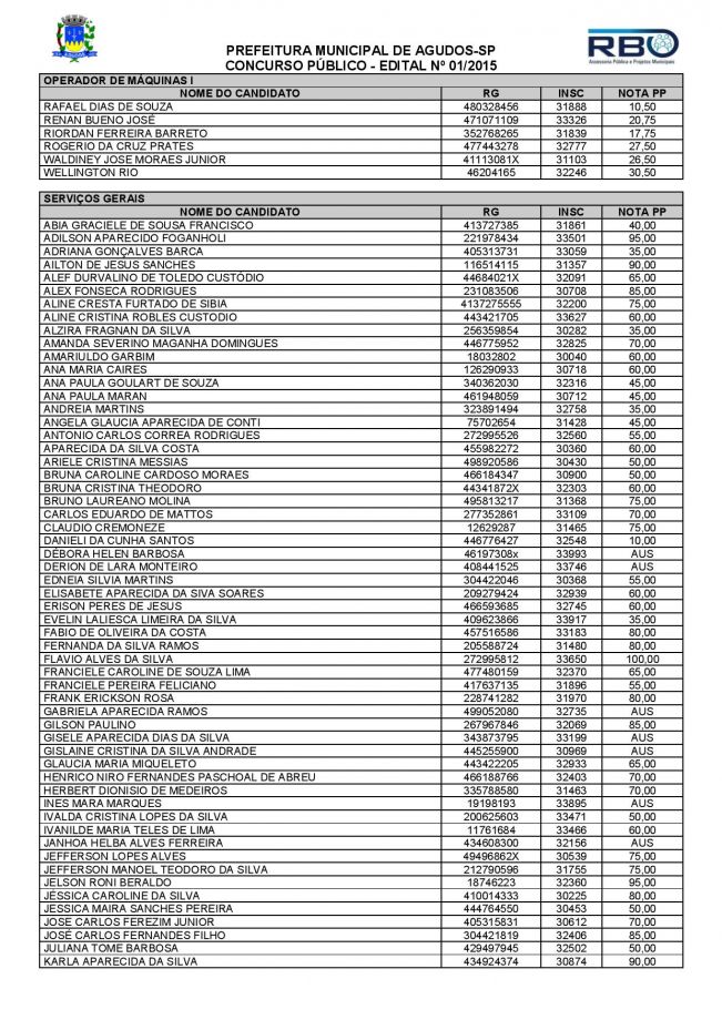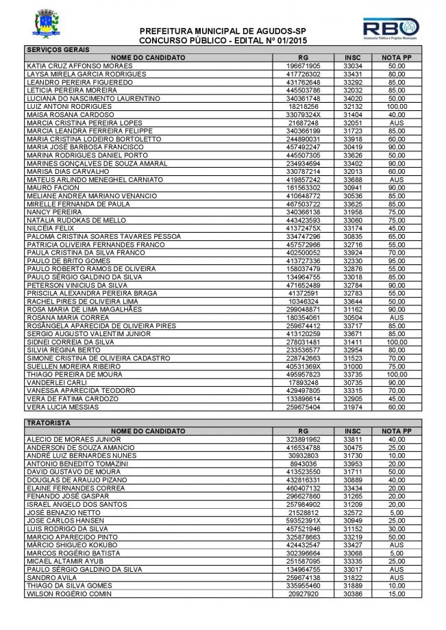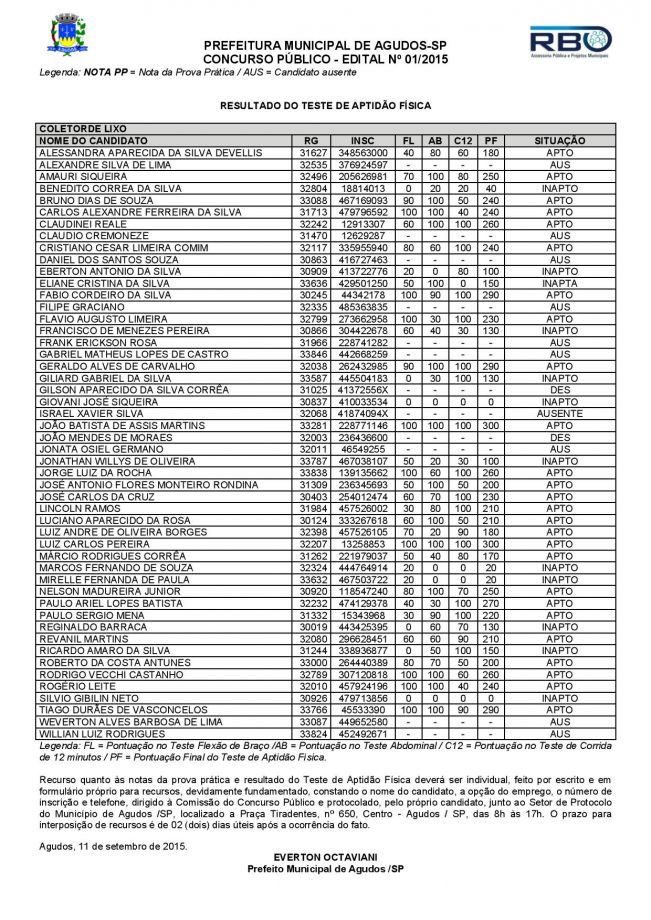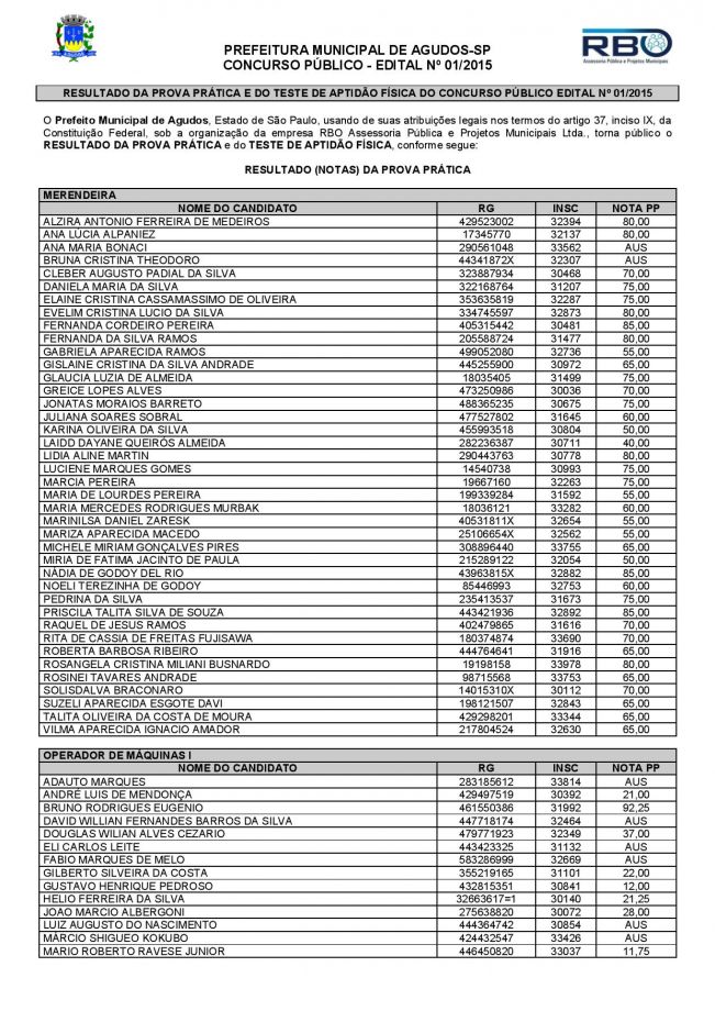 Resultado da Prova Prática e Teste de Aptidão Física da Prefeitura de Agudos