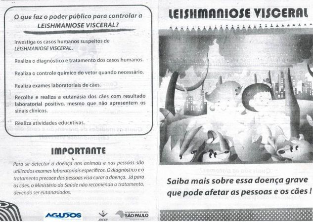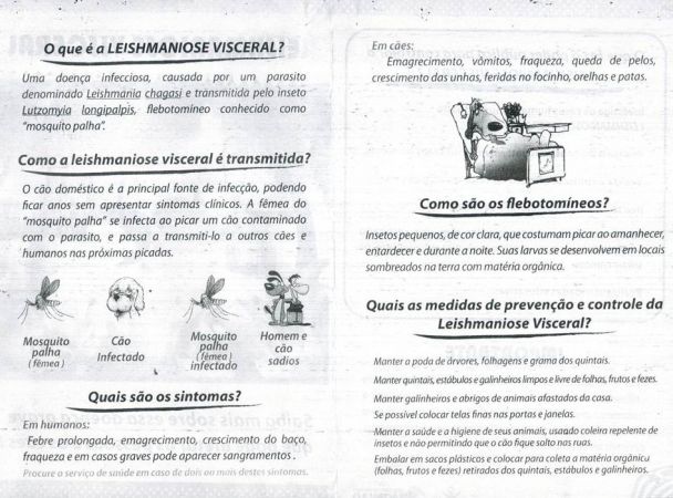 Saiba mais sobre a Leishmaniose, nas informações publicadas nas imagens do folheto abaixo: