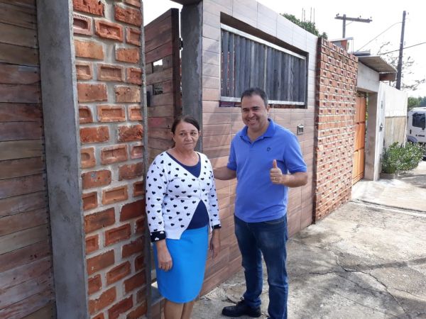 prefeito Altair Francisco com a moradora da Rua José Lovisi, dona Edvanda Oliveira da Silva