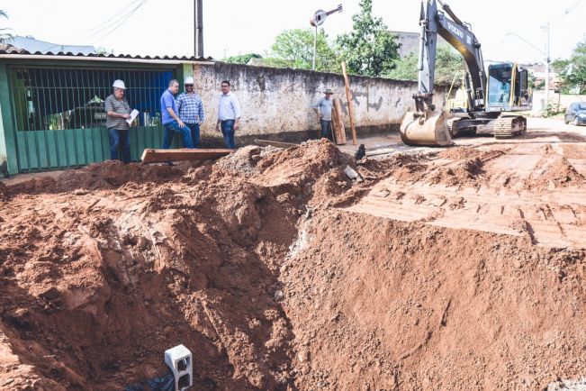 prefeito vistoria obras de galerias na Rua Sebastião Martins