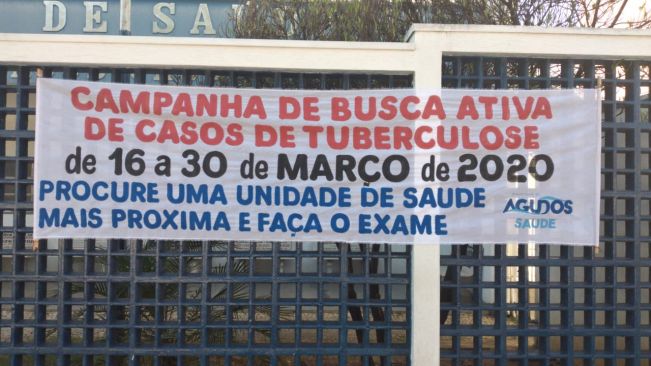 A Secretaria de Saúde da Prefeitura de Agudos realizará de 16 a 30 de março a Campanha Estadual de Sintomático Respiratório, com o objetivo de realizar a busca ativa de casos de tuberculose, doença crescente no Brasil.