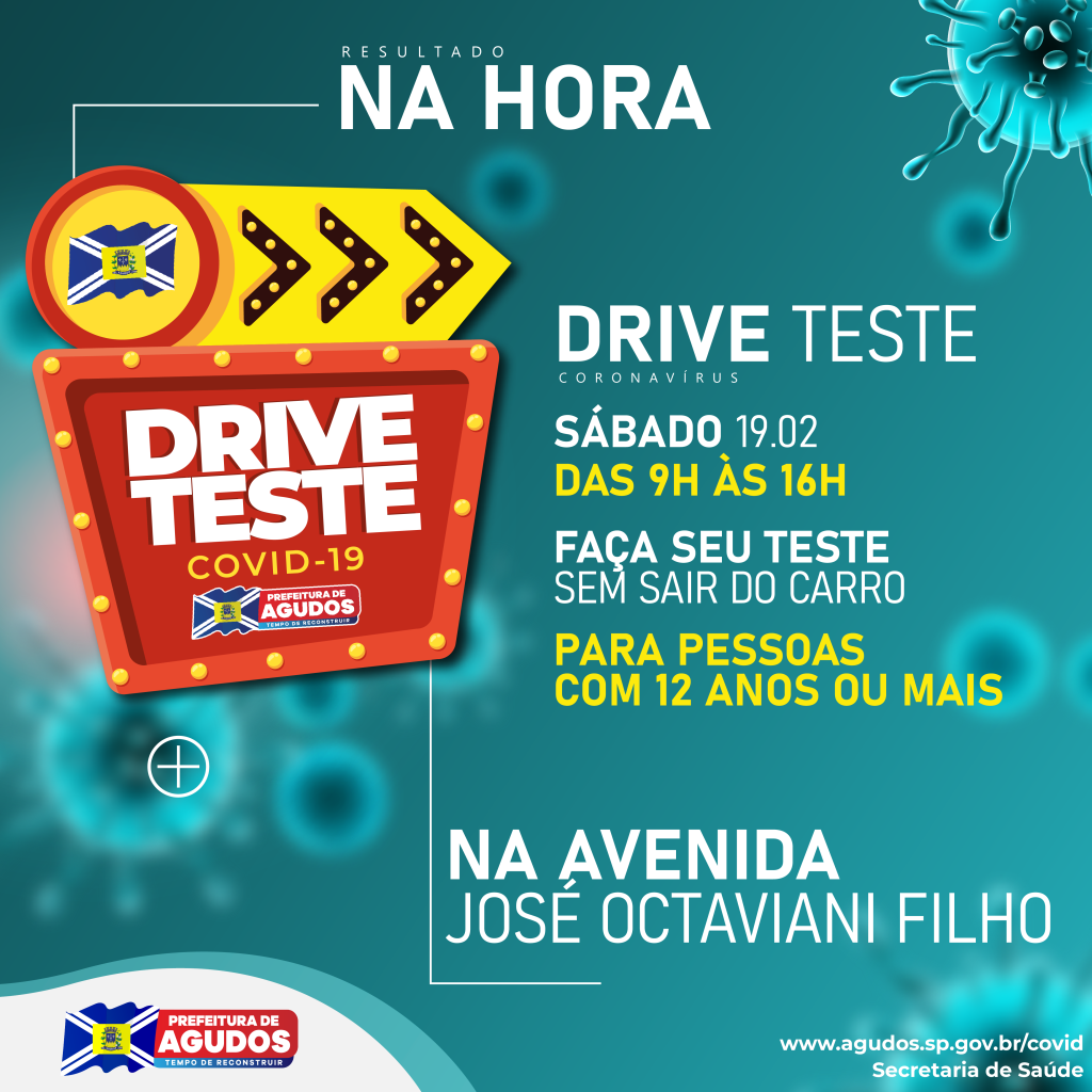A Secretaria de Saúde da Prefeitura de Agudos promove neste sábado (19/02) o Drive Teste, uma ação de testagem para a Covid-19. A ação será em formato drive thru, onde as pessoas fazem o teste rápido sem sair do veículo.