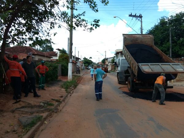 Recape começou pela Rua Hilário Ramos, uma das que mais sofre com os buracos e seguirá também pelas ruas adjacentes. Prefeito Altair acompanhou os serviços esta manhã.