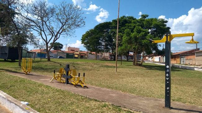 Limpeza de praça de lazer e academia de ginástica ao ar livre%2c na Rua 15 de Novembro%2c bairro Professor Simões