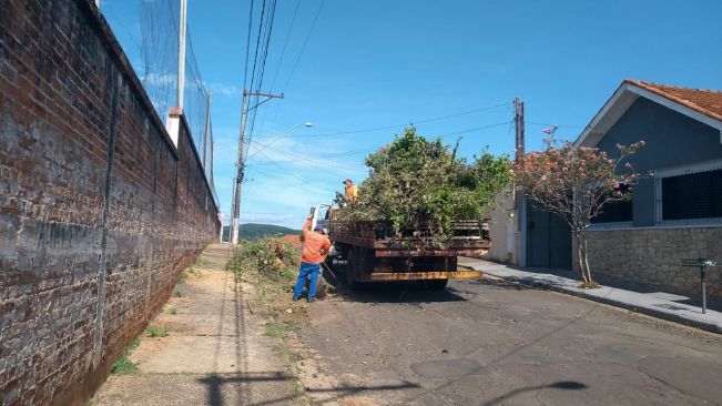 A Prefeitura também está colocando em dia os serviços de recolhimento de galhos e entulhos em diversos bairros e solicita a colaboração dos moradores para a manutenção da limpeza.
