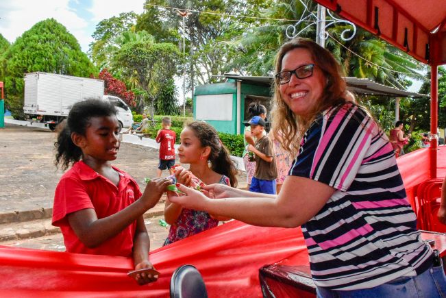 Festa em Domélia realizada pela Prefeitura distribui refrigerantes, batatas, sorvetes, pipoca e algodão doce, além de presentes de Natal