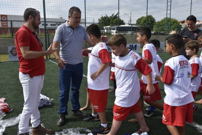 As aulas do futebol society acontecem no Núcleo Esportivo Jr. Fressatto, às terças e quintas-feiras, no horário inverso às aulas. A entrega dos uniformes para as 120 crianças que participam foi feita nos dois períodos.