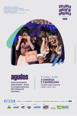 A Prefeitura de Agudos, por meio da Secretaria de Educação e Cultura apresenta o espetáculo “A Condessa e o bandoleiro”, atração artística que terá, pela primeira vez, a tradução simultânea pela Libras (Língua Brasileira de Sinais). Será no dia 15 de junho, no Teatro do Seminário Santo Antônio, a partir das 20h.
