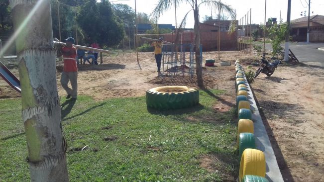 Além da limpeza dessas áreas, estão sendo feitos reparos na Iluminação, pintura e instalação de novos brinquedos criados com reutilização de pneus velhos