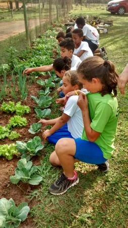 As crianças dos ensinos infantil e municipal se dedicam à horta, após conhecerem um dos objetivo da ONU contra a pobreza