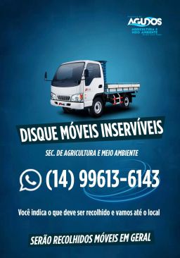 A Prefeitura de Agudos, por meio da Secretaria de Agricultura e Meio Ambiente disponibiliza para toda a população o Disque Móveis e Inservíveis, serviço pelo qual toda a população entra em contato com a secretaria por telefone e agenda o recolhimento de móveis velhos e outros inservíveis, o que evita que estes materiais sejam jogados na rua. Ligando para 99613-6143 o morador agenda a data de recolhimento e os funcionários da Prefeitura fazem a retirada no endereço indicado.