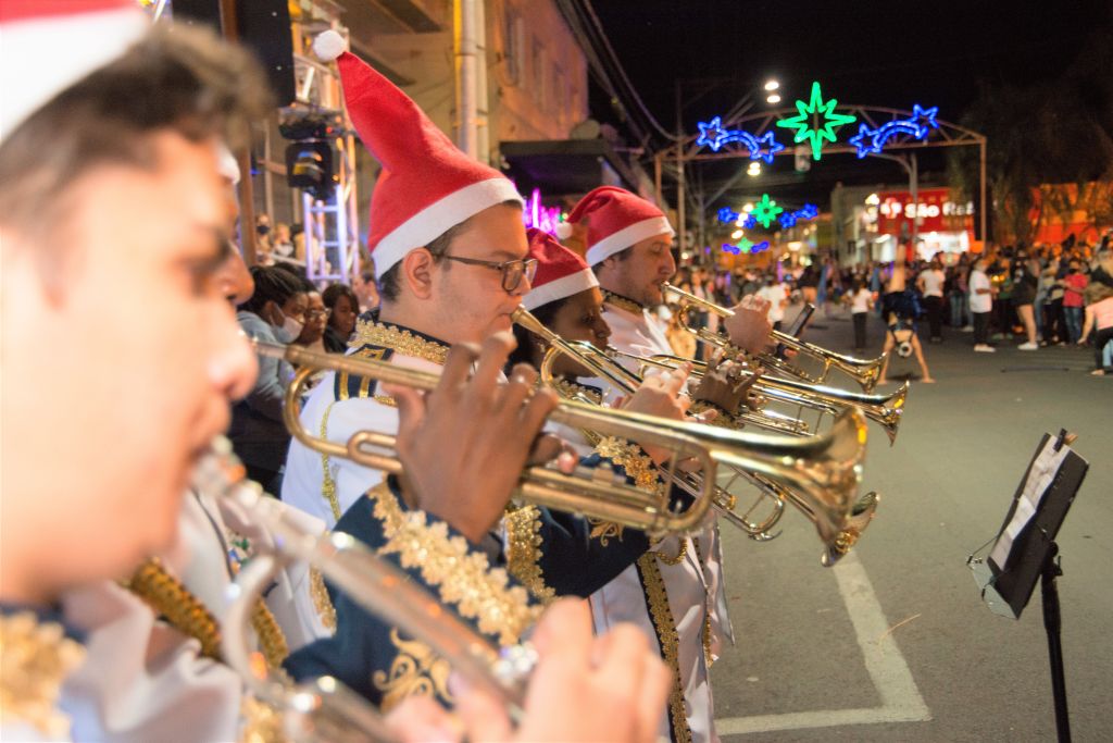 Na Parada Natalina o foco foi o público infantil. Dezenas de personagens subiram a rua Treze de Maio ao som da Corporação Musical Maestro João Andreotti, e também da Bateria do Noel. Um trenó com o Papai Noel chamou a atenção dos presentes e a presença do Bom Velhinho e dos personagens foi motivo de muitas fotos ao longo do desfile.
