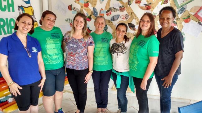 Nas fotos, as bibliotecas comunitárias e as funcionárias da Secretaria Municipal de Educação e Cultura, funcionárias das bibliotecas, representantes da Ecofuturo e da empresa Suzano.