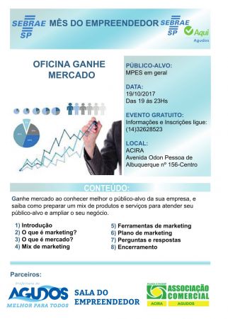 São 40 vagas, para o curso que acontece no dia 19 de outubro, com uma atividade no campo do Marketing com a temática "Ganhe Mercado".