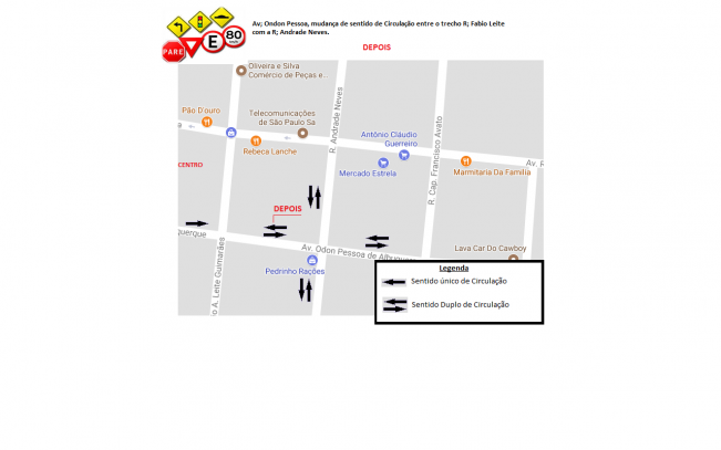O Departamento de Trânsito da Prefeitura de Agudos, informa a alteração de sentido de circulação de veículos na Avenida Odon Pessoa de Albuquerque, entre o trecho da Rua Fábio Leite Guimarães, com a Rua Andrade Neves, a partir do dia 13/11/2017, com o objetivo de promover organização e fluidez para os condutores que ali trafegam.