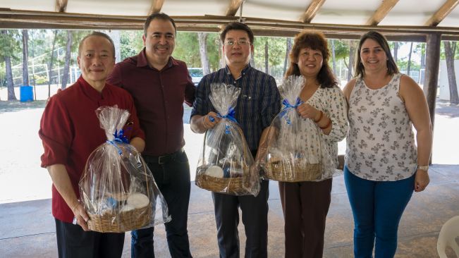 Li Wing, prefeito Altair, Marcello Song e esposa Dina, com a primeira dama de Agudos, Elisangela Bianchi.
